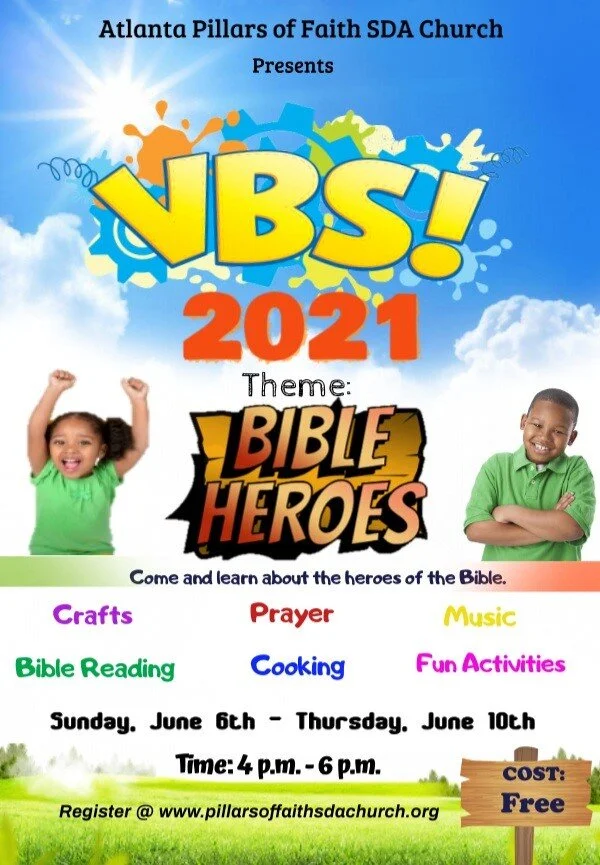 Vacation Bible School Sunday, June 6, 2021 4:00 PM 16:00 Thursday, June 10, 2021 6:00 PM 18:00 Google Calendar ICS